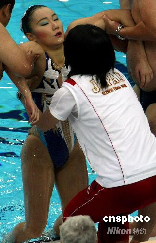 8月23日,北京奧運會花樣游泳的壓軸戲上演,八只強隊爭奪獎牌,長期位居世界大賽前三位置的日本隊不但出現失誤丟失銅牌,而且在比賽結束后一名選手在水中失去自治能力,在奧運會救護人員與日本隊隊友保護下緩緩挪到岸邊后昏厥,即刻被送醫院搶救。