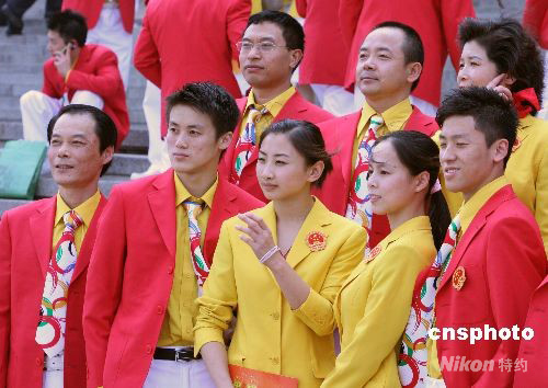 8月26日,2008年北京奧運(yùn)會(huì)中國體育代表團(tuán)總結(jié)大會(huì)在北京人民大會(huì)堂金色大廳舉行。中國蹦床運(yùn)動(dòng)員參加北京奧運(yùn)會(huì)中國體育代表團(tuán)總結(jié)大會(huì)。 中新社發(fā) 廖文靜 攝
