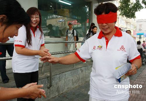 殘奧會志愿服務行動日 北京市民街頭體驗盲道