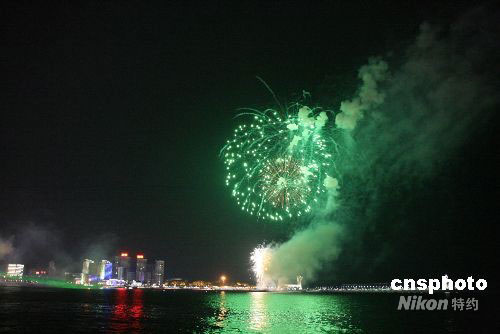 9月7日晚,殘奧會(huì)帆船賽啟動(dòng)儀式在青島奧林匹克帆船中心主題公園舉行,眾多市民和游客在五四廣場及音樂廣場觀看焰火。當(dāng)晚,青島街頭燈火輝煌、流光溢彩。中新社發(fā) 尤中原 攝