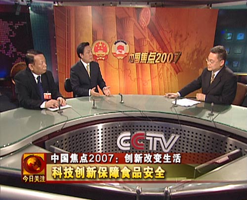 好,觀眾朋友,歡迎繼續收看我們的“兩會”特別報道:中國焦點2007年。今天,我們關注的是科技創新這個話題。今天演播室我們特別邀請到了兩位權威的嘉賓,我來介紹一下,一位是科技部副部長尚勇先生,你好,尚部長。