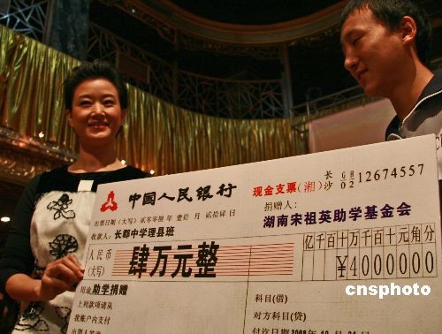 圖:香港企業家向四川宜賓捐款助教育