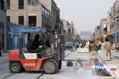 圖:前門大街進行路面保養 靜候"鐺鐺車"