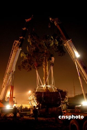 圖:鎮江一棵400年樹齡柏樹“搬家”