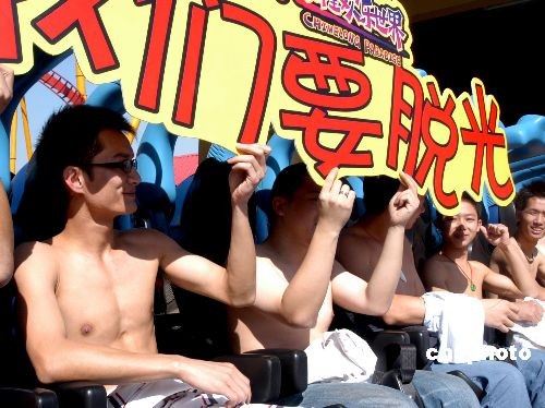 圖:廣州“脫光勇士”挑戰愛情過山車
