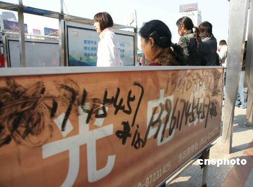 圖:無錫火車站廣場站臺、公話亭上涂滿小廣告