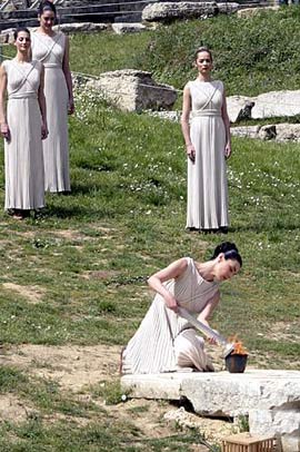 當地時間2008年3月24日上午11時48分,北京奧運圣火在古奧林匹克遺址點燃。在圣火采集儀式開始前,慕名而來的人們已經率先收獲兩個驚喜:一是被預報可能出現陰雨天氣的奧林匹亞,整個上午都是艷陽高照;二是希臘總統帕普利亞斯親臨現場,而在此之前,希臘總統只在二00四年出席過在本國舉行的雅典奧運會圣火采集儀式。 。
