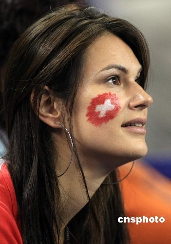 圖:美女球迷臉涂彩繪為費(fèi)德勒助陣