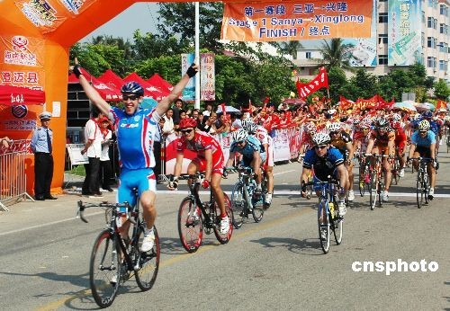 圖:俄車手稱雄環(huán)海南島自行車賽第一賽段