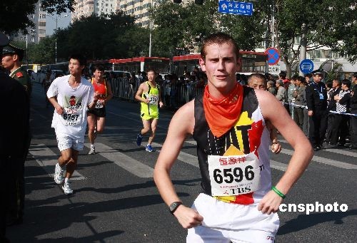 圖:北京國際馬拉松賽場上不服老的爺爺