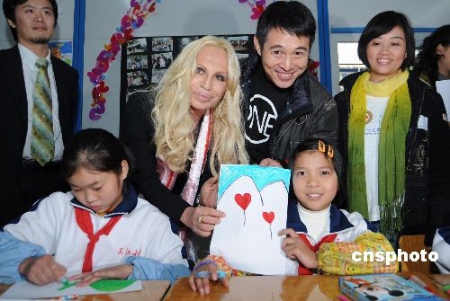 圖:李連杰與Versace在四川探訪兒童
