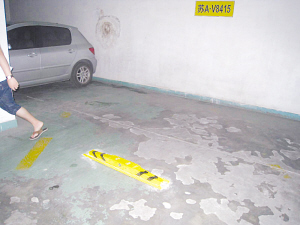 記者隨即來到大廈負二樓的停車場,一睹機械車位的芳容。“好家伙,不大的停車場里還真的停放了不少車輛!痹瓉恚瑸榱藢⑼\囄粩盗堪l揮到最大極限,這里的停車場充分利用了樓層的空間,借助機械設備將停車場分為上下兩層,使停車數量翻了一倍。那么市民爆料的人防工程停車位在那里呢?記者注意到,在機械車位的對面地面上還停著不少輛汽車,奇怪的是,每個停車位下面都安裝了地鎖,似乎是防止別的車輛亂停亂放。 就在記者感到納悶的時候,記者抬頭突然發現,在機械車位對面的墻體上有些人防工程的標識。