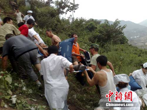 由于出事地點地形十分險要,公路離崖底大約有30米的垂直距離,根本無路可下,情況十分危急,當地村民的協助下找來鋤頭、鐵鍬迅速打開了一條臨時“生命通道”,趕到現場救援的消防官兵帶上破拆工具鉆進車內搜救幸存者,傷者被找到并用腰帶將傷者固定在擔架上,在當地村民和的協助下,用接力的方式抬著擔架,將傷者抬上路面,并立即送往縣內各大醫院進行急救。趕到現場的醫務人員判斷,車內有一些已無生命跡象。