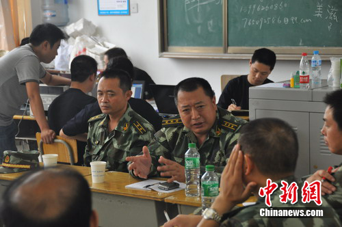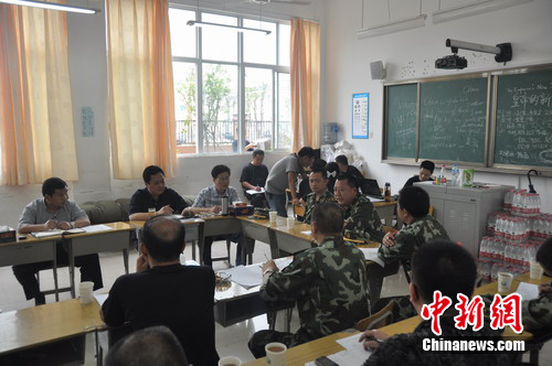 德陽綿竹清平泥石流搶險救援政法組織部召開聯絡會,商議下一步搶險救援工作。王超 攝