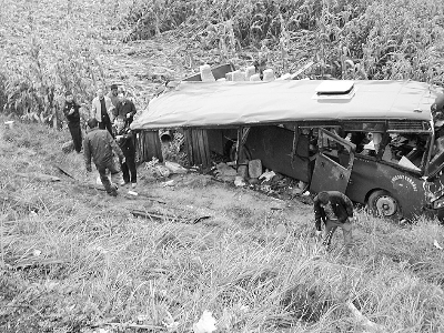 楊先生還說,多虧了路邊的一棵白楊樹。中巴車沖出國道后,撞到了樹上,緩沖了一下,隨后車掉進了玉米地。由于下過雨,地是軟的,又有玉米稈作鋪墊,減少了震蕩,所以雖然車體幾乎報廢,但沒有人員死亡。