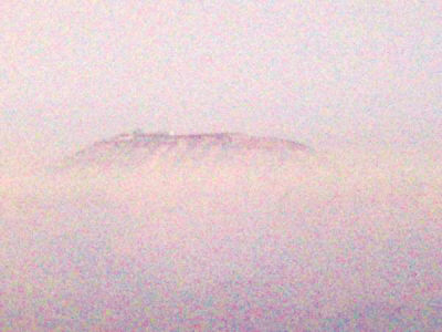 登上蘭山頂后,志愿者共同敲響了新年鐘聲,并在蘭山鐘院等待日出。由于時處清晨,蘭州城區被一層薄霧籠罩著,唯有潺潺的黃河在霧氣中忽隱忽現。恰在此時,志愿者李建強突然發現蘭州市區的上空多了個小島。大家定睛一看,果然有一個小島漂浮在市區上空。隨行的志愿者趕快拍下了這一幕。在照片的中央,一個小島橫埂在上面,山尖上的日出慢慢透出了光亮。10余分鐘后,“小島”上的日出消失,蘭州市區又被霧氣籠罩,海市蜃樓慢慢消失。半個小時后,太陽才從遠處的山坳里露出了“臉”,將新年的第一屢陽光撒向蘭州市區。