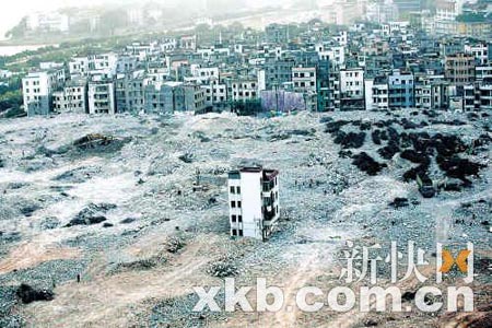 事情始發(fā)于去年11月,獵德拆遷接近尾聲,在東二區(qū)的拆遷工地中,一棟樓房矗立在拆遷工地中央。據(jù)了解,像這棟房子一樣,獵德村共計(jì)尚有4戶村民未與獵德經(jīng)濟(jì)發(fā)展有限公司簽訂拆遷協(xié)議,這四戶也就成了俗稱的“釘子戶”。