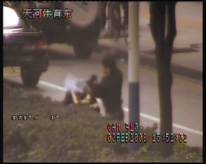 據(jù)事件目擊者賈先生稱,昨日下午4時(shí)多,他跟同事經(jīng)過(guò)位于正佳廣場(chǎng)東面的大廈時(shí),目睹了董某對(duì)交警施暴,“那個(gè)交警任他打,一點(diǎn)都不還手。”賈先生說(shuō)。而坐在監(jiān)控室里的一名交警則從錄像中看到了阿華被打的全過(guò)程。該名交警告訴記者:“我看著那個(gè)錄像,真是急。〈蛉说哪莻(gè)人很高大,估計(jì)有一米八幾,是個(gè)二十出頭的年輕小伙。他一路追著阿華打,阿華退了七八米,他還是繼續(xù)打,還使出鷹鉤拳,并用腳踢阿華的腹部。”