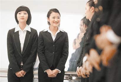 之前在外企工作的唐娜告訴記者,平常都是看到熟人時才笑,現在必須對視線范圍內的每個人微笑,直到練成條件反射。而且要露出八顆牙齒,露少了不真誠,露多了不好看。很多同學都咬著筷子練習,笑得臉都僵了。“國際標準微笑就是露出8顆牙齒,‘奧運空乘’代表國家形象,你可以不用精通各國語言,但你可以用端莊大方的微笑展示我們的熱情。”