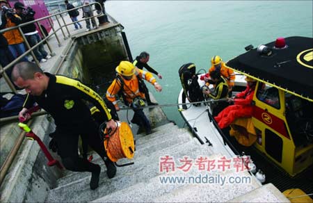 香港救援當局表示,前晚9時26分,水警接到此次事故的報警,馬上派出135名救援人員和20多只救援船只趕到現場通宵救援。最先趕到的水警目睹補給船下沉,當場將落水的7人救起。七人送院后,除一名女船員手部和背部受傷,其余人員均無大礙。