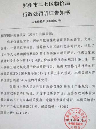 告知書上稱,“你單位在經營中,因使用欺騙性或者誤導性的語言、文字、圖片、計量單位等標價,誘導他人進行交易的行為,違反了《價格法》第十四條第四項的規定,屬于價格欺詐行為……本機關擬對你單位作出罰款50萬元的行政處罰。”