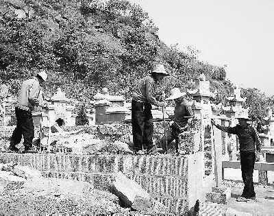 當地政府正在組織村民拆除非法墓葬。本報記者 劉天亮攝