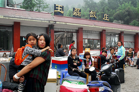 5月12日16點58分,紫坪鋪鎮都江村村民到開闊地躲避余震
