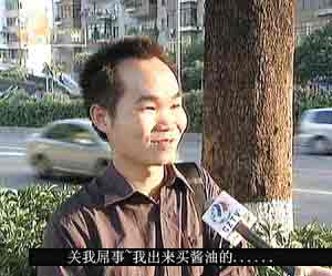 一張貼圖近日在網絡世界迅速風靡起來,其所描述的場景是前段時間廣州電視臺在街頭隨機采訪市民,“請問你對艷照門有什么看法?對CGX等明星又有什么看法?”某男性受訪者從容應答:“關我X事,我出來買醬油的……”這句話在網絡間迅速流傳,各種PS和改編風靡一時。由此“醬油男”一詞在網路成為笑談,甚至派生出了醬油族等網絡用語。