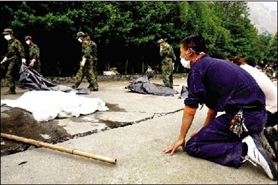 昨天一上午,官兵們共挖出3名被埋者,12點(diǎn)挖出的這名女性是黃泥村的村婦女主任,名叫劉曾群,今年50多歲。見到母親遺體,劉曾群的兒子和女兒哭跪在地。但3個(gè)人沒有一個(gè)是彭先根的老婆。彭先根手拿妻子11日在一處景點(diǎn)拍攝的照片說,這是她最后的照片,身后的景點(diǎn)叫龍吟瀑。地震后,龍吟瀑不復(fù)存在。