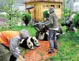 5月16日,成都大熊貓繁育研究基地接到了國家林業(yè)局、四川省林業(yè)廳等部門的緊急指示后,在最短時(shí)間內(nèi)為臥龍大熊貓準(zhǔn)備了2500公斤竹子、2000公斤竹筍、100公斤窩頭、1000公斤蘋果、200公斤熊貓專用奶粉,于5月18日送抵臥龍中心。18日當(dāng)天,lookpanda網(wǎng)站組織的救援隊(duì)也帶著一批食品和物資上路,20日抵達(dá)。據(jù)救援隊(duì)隊(duì)員介紹,盡管他們之前有心理準(zhǔn)備,但還是被眼前的景象震住了。熊貓園里,大熊貓們驚恐地?cái)D在一起。往日這里竹子竹筍成堆,而今卻不見一星半點(diǎn)。一只熊貓去