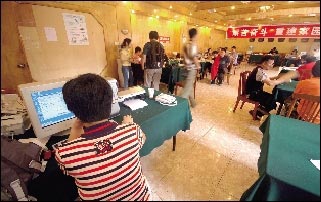 下午6點左右,除了公安局和失蹤人口登記處,其他單位都下了班,準備去食堂吃飯。尹艷和廖明艷將桌子上的紙杯、廢紙都收拾了,并把椅子排好。她們說原來在北川就是如此,4天下來,她們和同事已經習慣把這兒叫做辦公室,而不再是之前的天龍賓館。(記者 唐駿 穆奕)