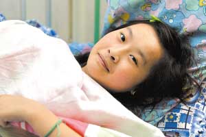 康潔是不幸的,不過康潔也是幸運的,5月15日當(dāng)晚,手系著紅色絲帶的康潔被解放軍抱上了飛機,直接送到成都的四川省人民醫(yī)院接受治療!皨寢尞(dāng)時沒有和我一起去成都,我擔(dān)心極了。”不過第二天,楊秀香就翻山越嶺地走了10多個小時來到成都。母女倆在四川省人民醫(yī)院相見的時候,女兒的左腳的手術(shù)已經(jīng)成功完成。