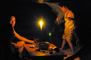 入夜,電路無(wú)法覆蓋的山上臨時(shí)安置點(diǎn),居民只得秉燭談心。