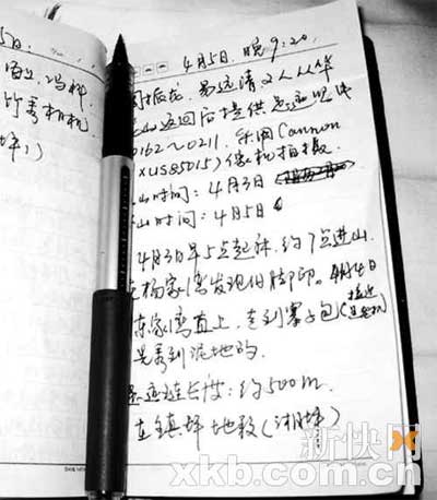 國家林業局鎮坪專家組筆錄周正龍等發現老虎腳印,周拍攝下記錄信息。