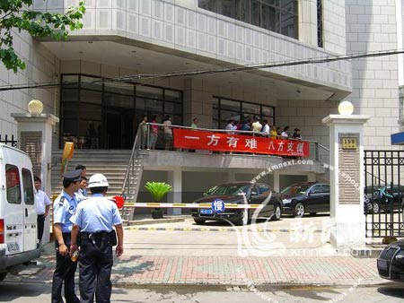 事故現場,閘北區政法大樓。 新民網 沈文林 攝