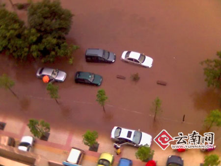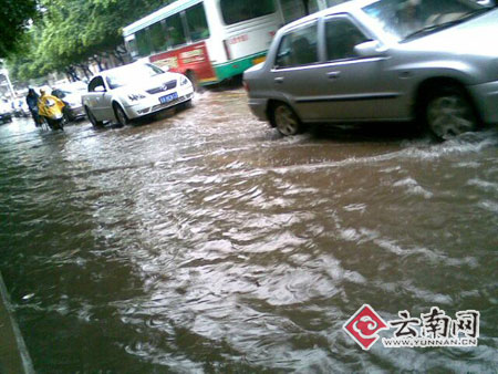 7月1日晚至今天的昆明持續暴雨,大雨再次挑戰昆明排水系統,全城不同程度遭水淹,最深處已超過1米。很多早起上班上學的市民只能涉水“過河”,而車輛只能在水中“游泳”。今日凌晨,本網手機報彩信平臺陸續收到了熱心市民拍攝的現場圖片近百張。此次大雨淹城,距上次昆明因強降雨造成水患僅隔半個月時間。據省氣象臺預報,未來48小時昆明還降普降小雨到大雨,積水在短時間內還將持續,請市民提前做好出行安排。