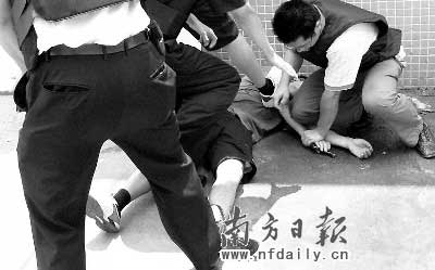 在對抓獲的兩名犯罪嫌疑人審訊期間,聯(lián)合專案組掌握到該團伙另一名成員“阿文”藏匿在松崗街道某旅店。11時許,“阿文”察覺遭到警方圍捕,在松環(huán)路美食街附近先后持槍劫持兩名男子和一名女子作為人質(zhì)。聯(lián)合專案組民警立即組織疏散群眾,同時與嫌疑人周旋。“那個歹徒很囂張,不斷地叫喊,來了近百名警察把他圍了起來,場面很緊張,我都叫我老婆趕緊離開。”目擊者關(guān)先生心有余悸地說。