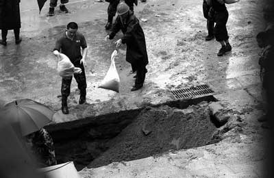 對工程方迅速用混凝土填埋深坑的做法,他說,這樣不妥。“如果已查明事故原因,應(yīng)及時排除故障,然后再填埋。沒有查明原因,就封填坑口,會給以后的工作帶來不便。”□見習(xí)記者魏浩文記者洪波圖