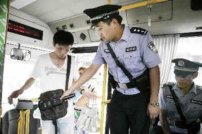 廣泛發動群眾積極舉報涉恐涉黑涉惡犯罪線索,嚴厲打擊涉恐涉黑涉惡犯罪是長沙公安機關根據面臨的新形勢、新任務、新要求實施的一項重大舉措,大量事實證明,犯罪分子藏匿在群眾之中。從昨日起,長沙公安城管警察攜帶包括多功能腰帶、對講機、催淚噴射器、手銬、執勤包、伸縮性警棍六件套裝備和危爆物品檢測儀登上公交車,維護公交線路和各個站點的安全秩序,這是長沙警方首次在公交車上進行安全防控。