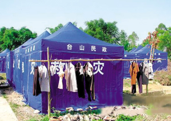 (廣東省)臺山市那扶鎮圍仔腳村、長邊村等多條村莊自從上月8日起陸續發生地陷,造成村民房屋倒塌,導致9條自然村245間民房出現不同程度的裂縫,63處地陷,地表裂縫19處,水井干涸。江門市及臺山市民政部門已及時讓受災村民住進救災帳篷里。