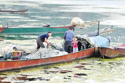位于陽宗海邊的昆明市宜良縣湯池鎮施家嘴村,當地村民的生活與陽宗海息息相關。記者看到,這里隨處可見的是昆明、玉溪兩市政府對陽宗海實施“三禁”的通告:禁止飲用陽宗海水;禁止在陽宗海游泳;禁止捕撈陽宗海的水生產品。通告的簽發日期是9月17日。