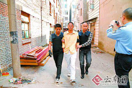 上午8點49分,昆明市公安局五華分局馬村派出所接到市局110指令,下馬村301號4樓,一男子劫持一女子欲將其殺害。民警迅速趕到現場,見男子反鎖大門,拒絕開門的同時,情緒比較激動:“我就是要殺了這個賤人,你們不要管我!”他還嚷著如果民警進屋,就要殺死懷中女子。民警通過出租房門頭的窗戶往里看,只見一名戴眼鏡的男子一手勒住一女子的脖子,另一只手拿著一把長20多厘米的菜刀架在女子脖子上。女子面色慘白,全身瑟瑟發抖,一臉恐懼。