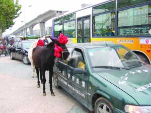 20多歲的李先生拿出手機一邊拍照,一邊對身邊的女友說:“毛驢我見過,可在這城市道路上用轎車牽毛驢,我算是第一次見,真好玩!”由于轎車與兩頭毛驢占據了不止一股車道,加上行進緩慢,結果毛驢所到之處,交通很快陷入無序。騎車的路人及行人見了,也紛紛圍上來看熱鬧,現場一片混亂。