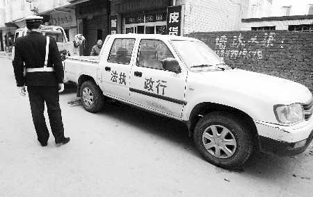 昨日上午,執法局在孫八寨村內找到了這輛山寨版執法車,當即撥打電話報警,特巡警三大隊民警趕到現場后,得知車主去了北京,于是將車子拖進了停車場。