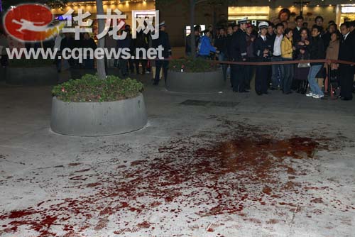 今晚(25日晚)9:10分左右,重慶市江北區北城天街(肯德基、遠東百貨中間的廣場)發生一起慘案:一女子被一持刀男子,連砍數刀倒在血泊中,之后該男子舉刀自殘。