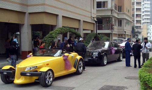貌似并不高檔的小區(qū)內(nèi),卻出現(xiàn)了超豪華的強(qiáng)悍車隊(duì):“獵獸”開頭,后面跟著三輛“幻影”,以及“賓利”“世爵”等車(如圖)。昨日,一則《福州某集團(tuán)老總嫁女,豪車云集》的帖子在某網(wǎng)站論壇走紅,該帖描述在福州的碧水芳洲小區(qū),某集團(tuán)老總嫁女,眾多豪車云集,場面壯觀。眾多網(wǎng)友稱,已被這些豪車震得說不出話來了。(成都晚報)