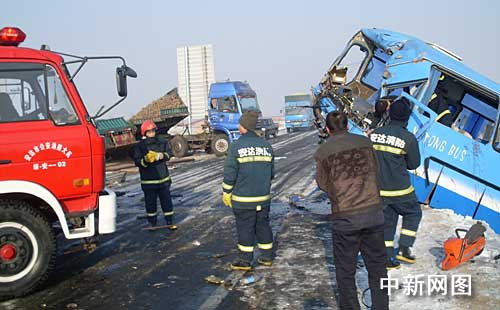 事故發生后,安達市消防大隊的消防官兵、120醫護人員立即趕到現場參加救援。據現場救援人員介紹,兩車都滑入路旁的深溝中,客車駕駛室嚴重變形,駕駛員被困車內,消防官兵趕到現場將被困人員救出。記者從安達市人民醫院了解到,該院目前收到事故中9名傷者入院治療。