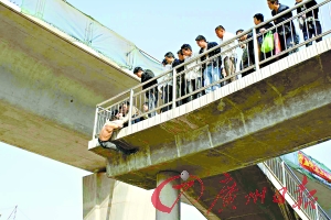 這場鬧劇前后上演了40分鐘左右,小偷終于放棄“胡鬧”,老老實實地爬上了天橋,并被帶往羅崗派出所接受調查。(記者阮曉光攝影報道)