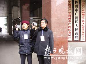 大年初七是節后上班第一天,上午8:20,在揚州市廣陵區政府當公務員的張先生上班時驚奇地看到,單位大門口有人“架”著攝像機正“掃”著上班的人和車輛,“這不是在看誰上班遲到嗎?”老張不禁加快了步伐。昨天上午,有“城市啄木鳥”之稱、專給不文明現象“挑刺”的揚州一民間團體市民觀察團,派出6個小組91名團員,掛著工作牌,帶著攝像機來到該市城區各級政府門前,專門“聚焦”上班遲到者,以特有的方式治理節后懶散病,狠殺“年氣”,督促大家回到正常的工作狀態。