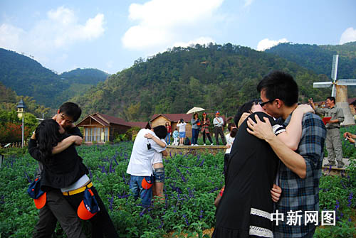 其時,數十對年輕戀人在紫色薰衣草“海洋”中以最深情最特別的花式親吻“大曬幸福”,從“蜻蜓點水”到“居高臨下”、從“天旋地轉”一直到“深情熱吻”,各有捧場客,頓時贏得了現場游人的陣陣掌聲和歡呼聲。